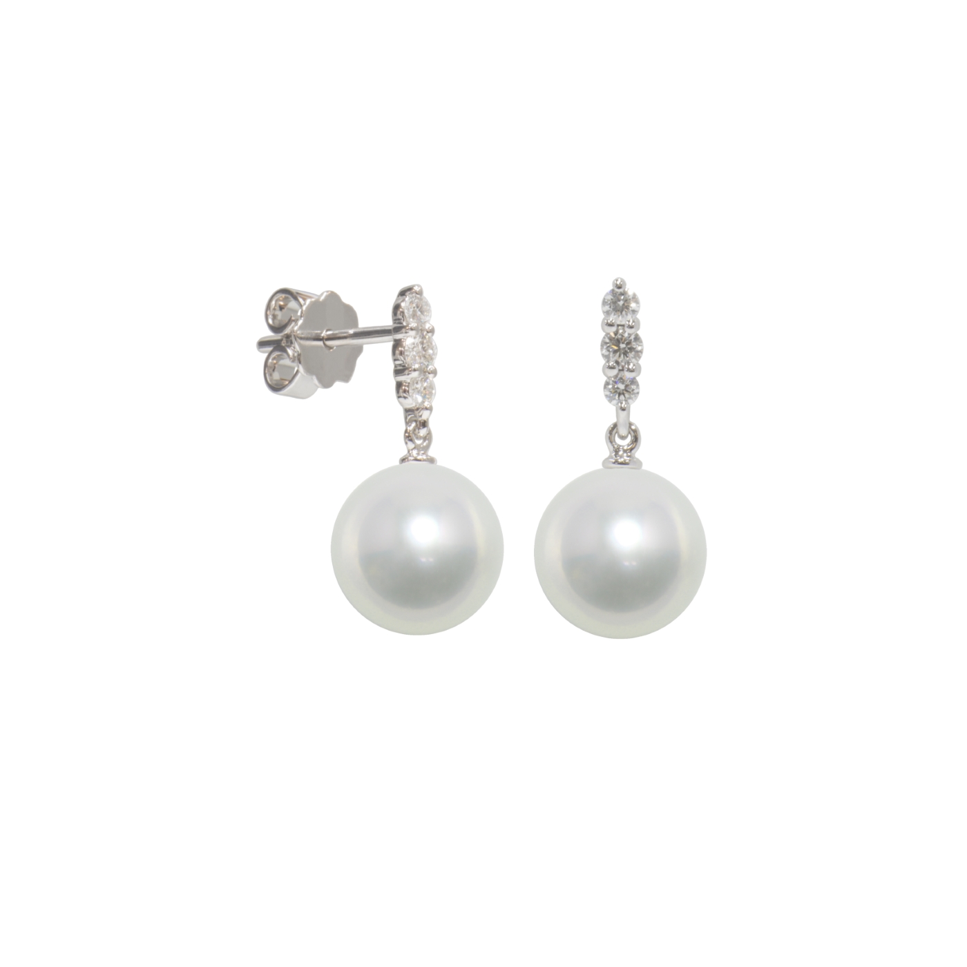 18ct white triple drop stud earrings featuring 0.18ct diamonds